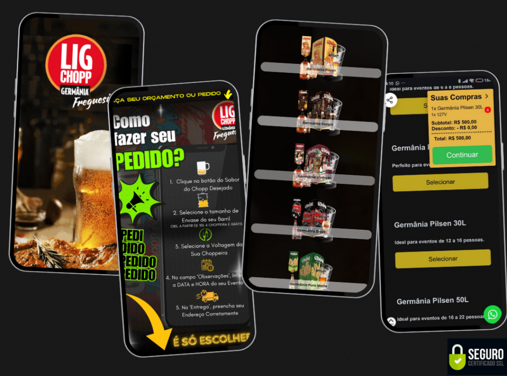 Oferecemos uma variedade de chopps e cervejas artesanais. Além de espetos e utensílios para churrasco. Nossos clientes podem fazer o pedido pelo nosso WhatsApp e receberão seus produtos em casa pronto para consumo. Nossa equipe de entregadores é altamente capacitada para garantir que os produtos cheguem em perfeitas condições